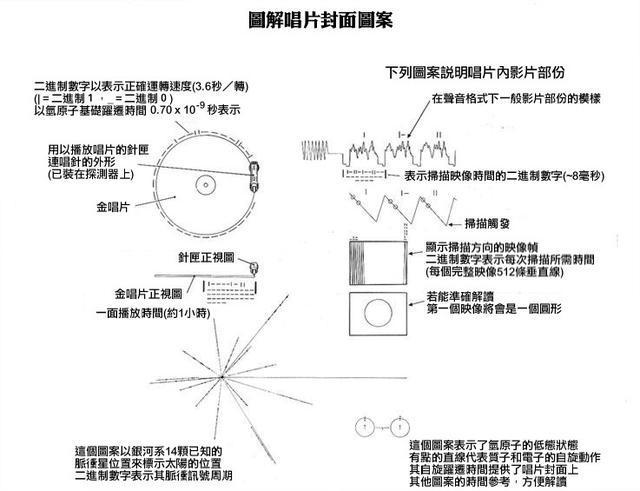 很多人说的旅行者号上的金唱片用到的这张图片其实只是唱片的封套。在这个封套上所记录的其实就只是唱片的说明书以及简要信息。